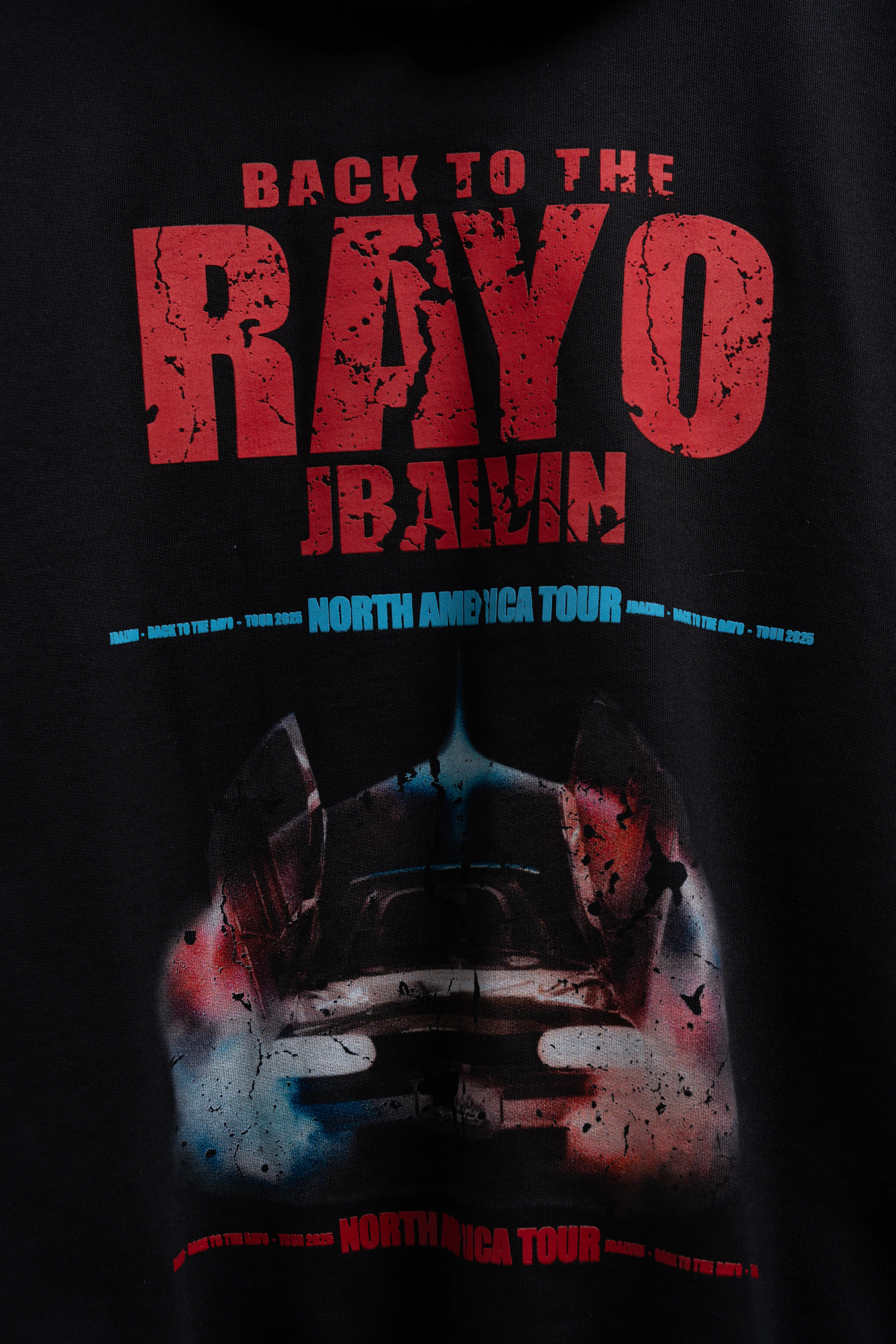 The Rayo Tour merch by J Balvin blends a retro-futuristic VHS aesthetic with industrial and high-voltage graphics, symbolizing power and transformation. Each piece is designed to exude confidence, movement, and cultural impact. ⚡
